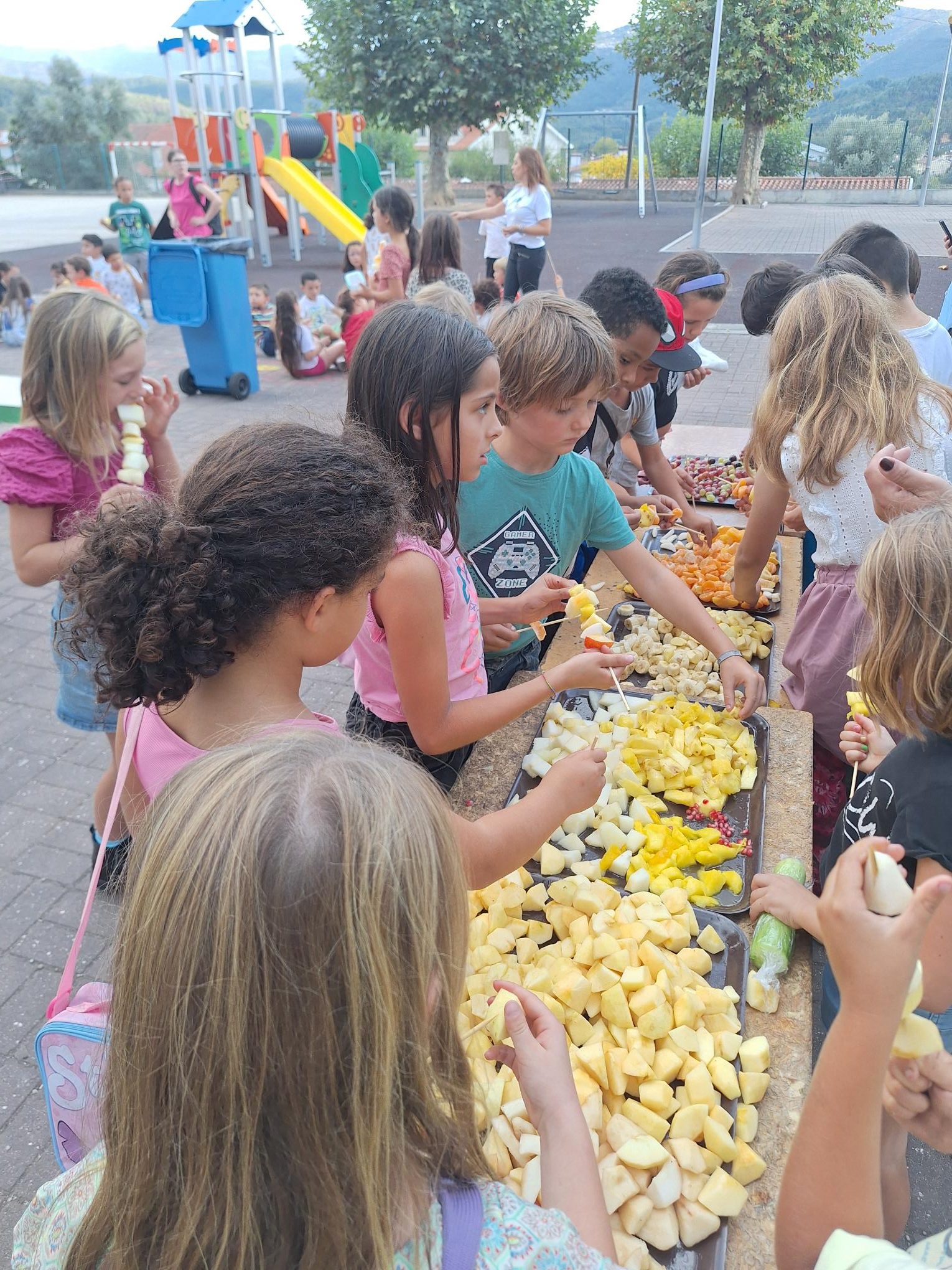 Tivemos palestras com a equipa de enfermagem escolar sobre a utilização do mel em substituição do açúcar – “Sabes de onde vem o mel e como é feito?”, explorámos a história “A Lagartinha Comilona”, envolvendo, desta forma, a Biblioteca Escolar. Também construímos um Puzzle gigante utilizando materiais recicláveis baseados na história lida, bem como, a elaboração de umas lagartinhas que deram largas à imaginação dos alunos. Para terminar a semana em grande, confecionámos umas deliciosas espetadas que muito agradaram à criançada!