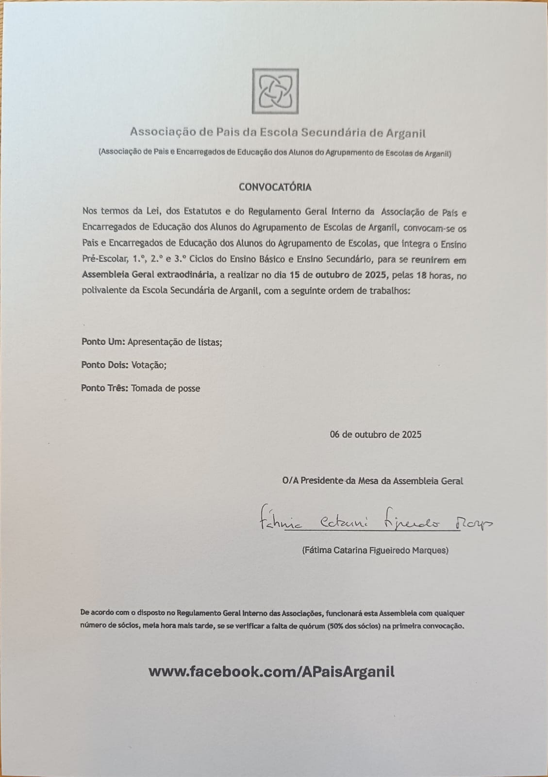 Assembleia Geral extraordinária da Associação de Pais