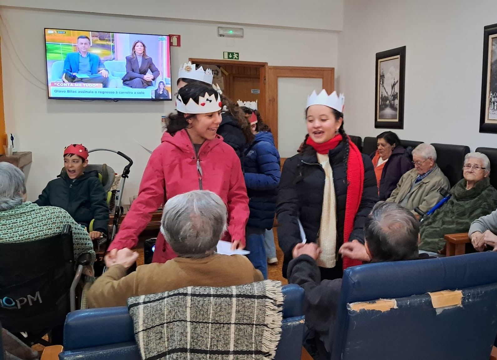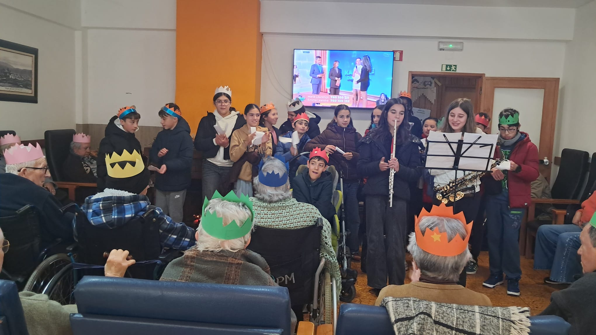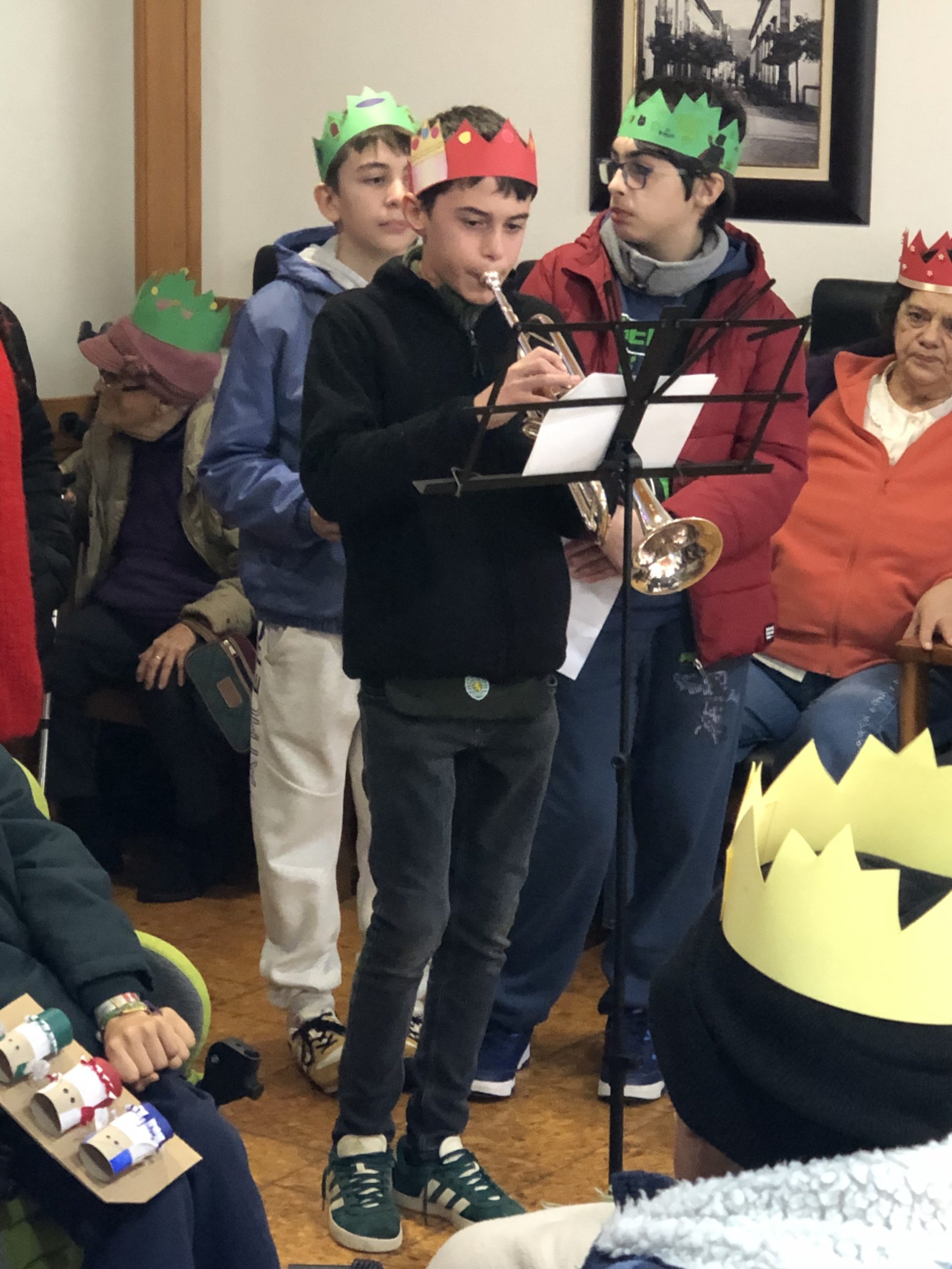 Nesta visita, os alunos tiveram a oportunidade de oferecer coroas por si criadas e decoradas, e postais com mensagens natalícias, elaborados com o apoio da professora de TIC. Cantaram, em conjunto, algumas músicas, atuais e de outrora, alusivas à temática, declamaram poemas de autores portugueses e, recorrendo a vários instrumentos musicais, abrilhantaram o momento e proporcionaram sorrisos e alegria.