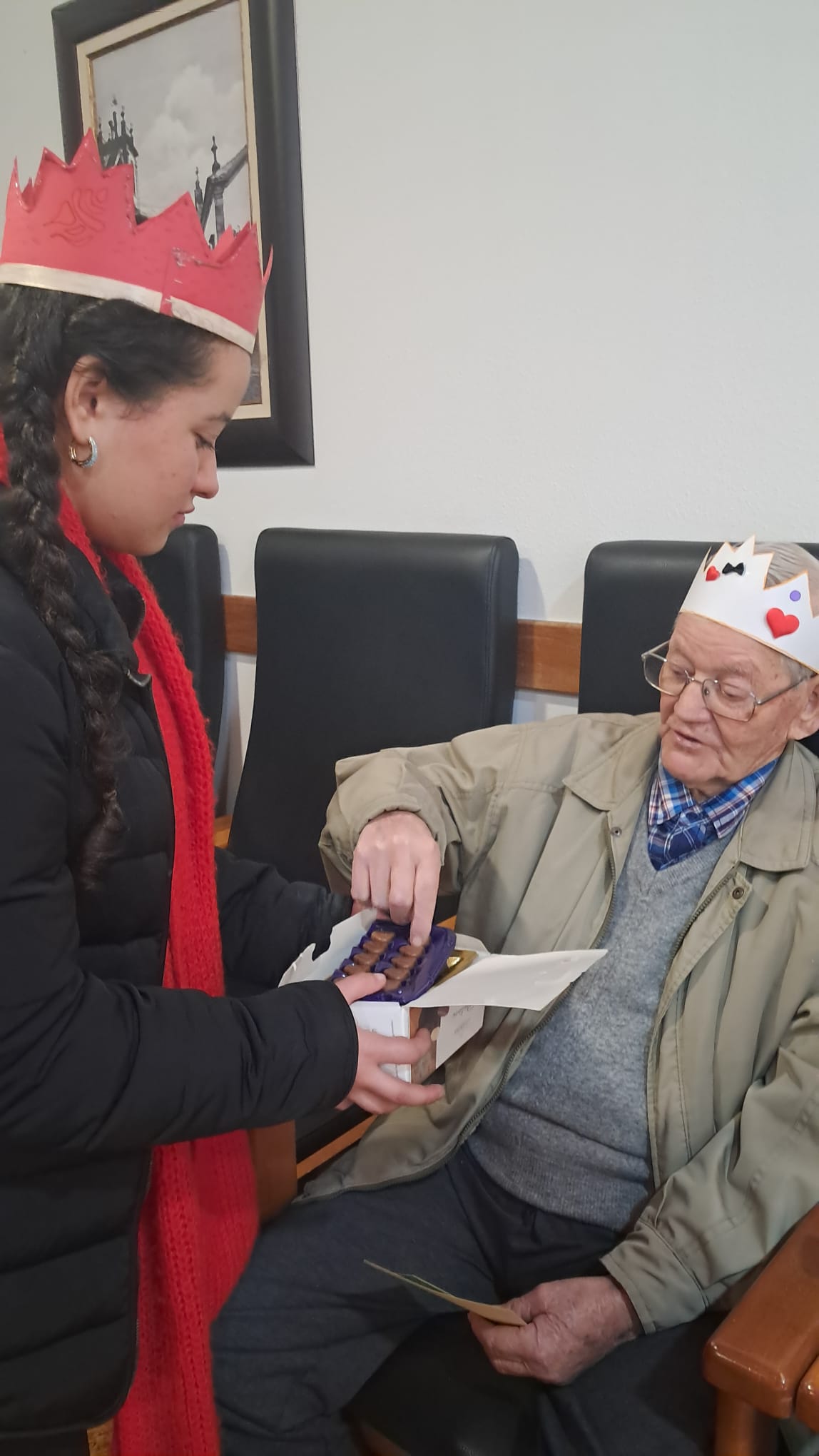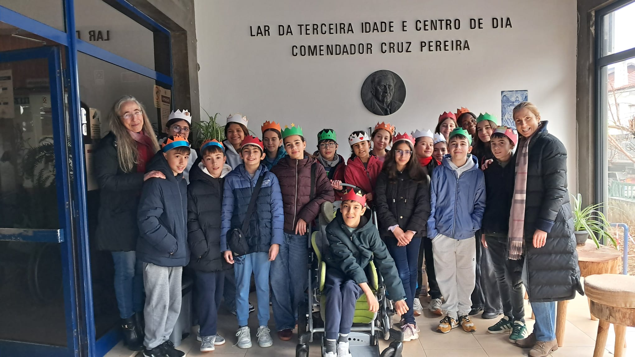 Na manhã do dia 9 de janeiro, no âmbito do projeto Entre Tempos, as Professoras Ana Catarina Marques, Arminda Ramos e Marta Rovira acompanharam a turma 7.ºD_AR e alguns alunos do 7.º A_AR à Santa Casa da Misericórdia de Arganil, para celebrar o Dia de Reis.