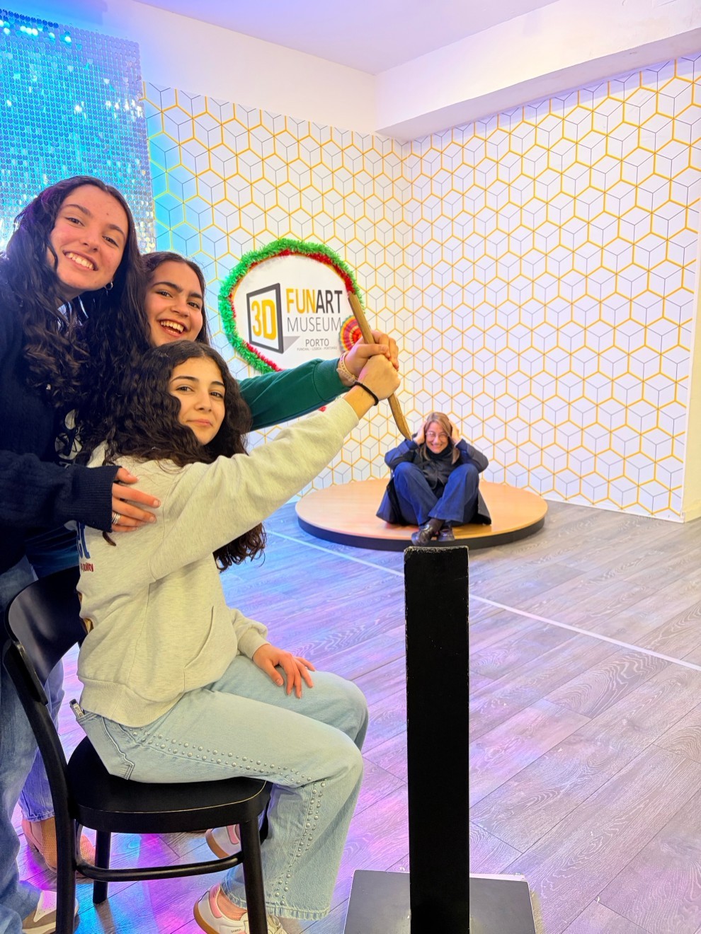 A jornada começou entre ilusão e geometria com a imersão na criatividade no 3D Fun Art Museum. Mais do que diversão e fotografias originais, este espaço permitiu aos alunos explorar conceitos práticos de perspetiva e profundidade, compreender o fascinante mundo das ilusões de ótica, aplicar conhecimentos de Geometria, observando como as projeções 3D e as regras de proporção ganham vida fora dos manuais escolares, afinal… nem só de teoria vivem os alunos!