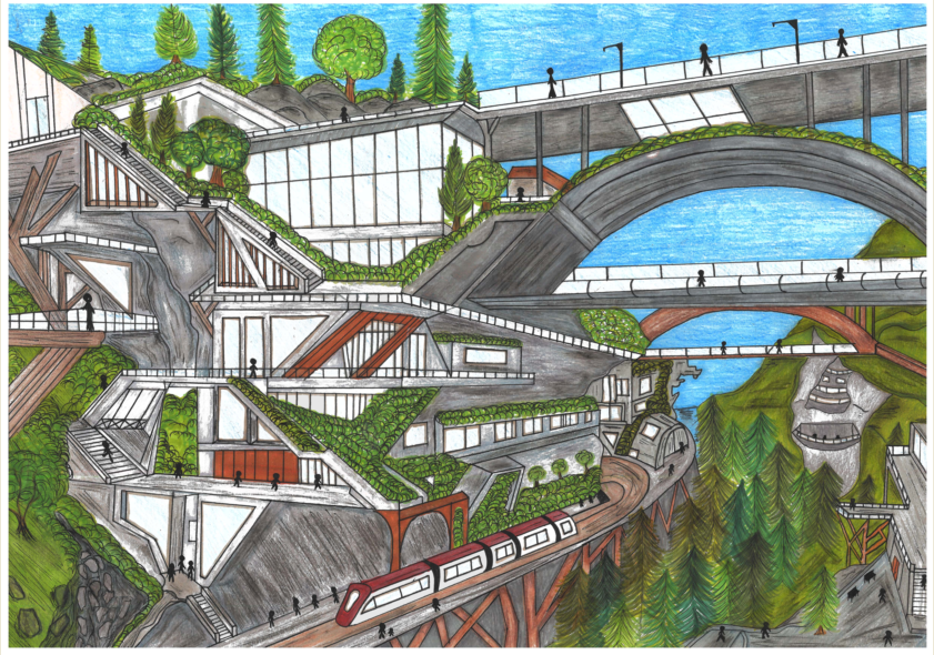 A ilustração a concurso foi desenvolvida no âmbito de uma unidade de trabalho da disciplina de Desenho A, subordinada ao tema “Cidades Sustentáveis — Relação entre o Urbanismo, Natureza e Pessoas”. Os alunos de Artes Visuais foram desafiados pelas professoras de Desenho A a refletir, de forma criativa e artística, sobre o papel das cidades no equilíbrio entre o ambiente, os espaços urbanos e a vivência humana.